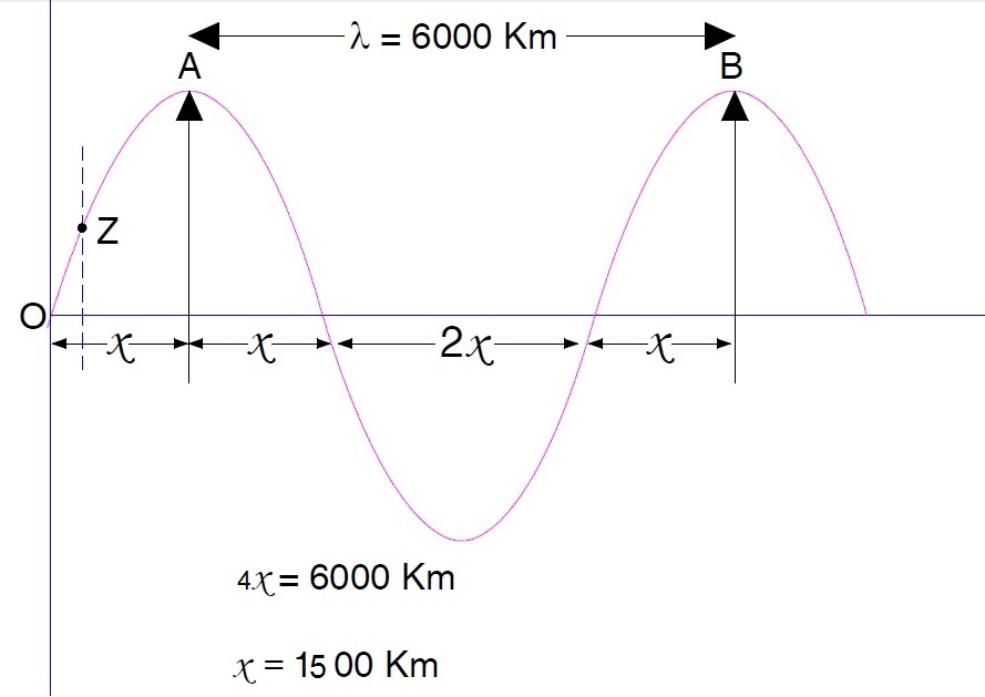 ⇒ λ = 3×105 / 50 = 6000 km