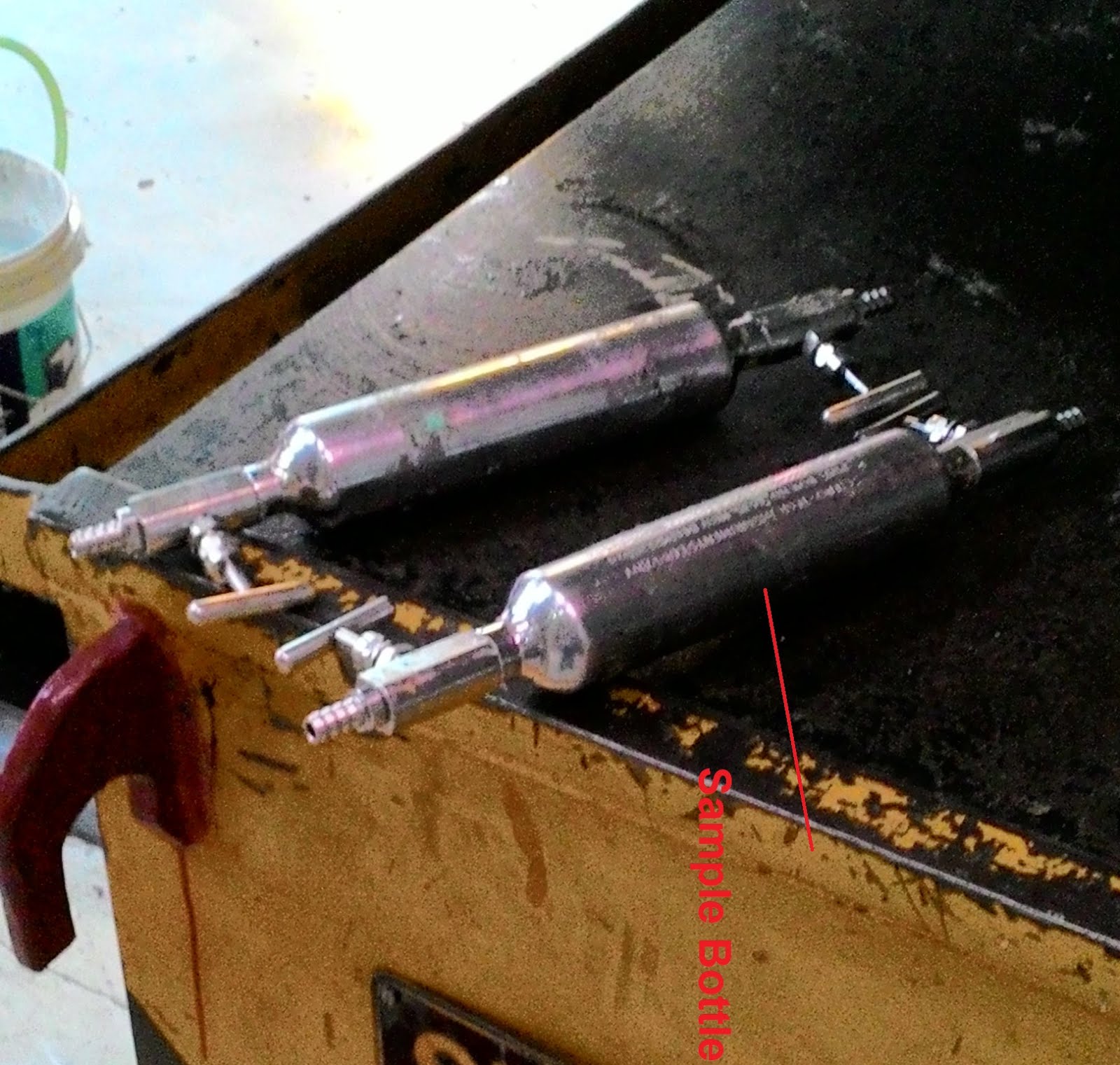 For the purpose of BDV test, oil sample from Transformer is taken in a Sample Bottle. While taking sample of oil from transformer, Sample bottle should be flushed well by Transformer oil and oil in Sample bottle should be vented properly so that atmospheric moisture could not ingress in the sample oil. A typical way of taking oil sample in Sample Bottle is shown in figure below.