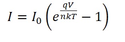 n = ideality factor, a number between 1 and 2 which typically increases as the current decreases.