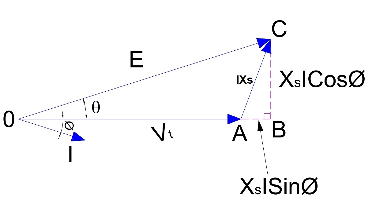 ICosØ =  (ESinθ) /  Xs…………………………. (1)