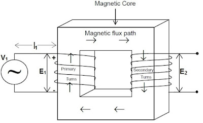 Because of this alternating mmf, an alternating flux is set up in the core of Transformer which links with the Primary as well as Secondary winding and as per Faraday’s Law of Electromagnetic Induction, an emf E1 & E2 are developed across the terminals of the Primary and Secondary winding.