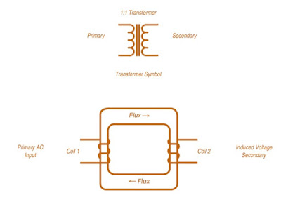 Isolation transformers block transmission of the DC component in signals from one circuit to the other, but allow AC components in signals to pass. Transformers that have a ratio of 1 to 1 between the primary and secondary windings are often used to protect secondary circuits and individuals from electrical shocks between energized conductors and earth ground.
