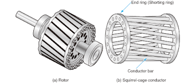 A Squirrel Cage Induction Motor (SCIM) only has a cage rotor winding, whereas a synchronous machine has both a cage (damper) and a wound DC field winding as shown in figure below.