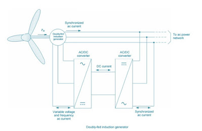 This is where Doubly-fed Induction Generators come into play, as they allow the generator output voltage and frequency to be maintained at constant values, no matter the generator rotor speed and thus, no matter the wind speed.