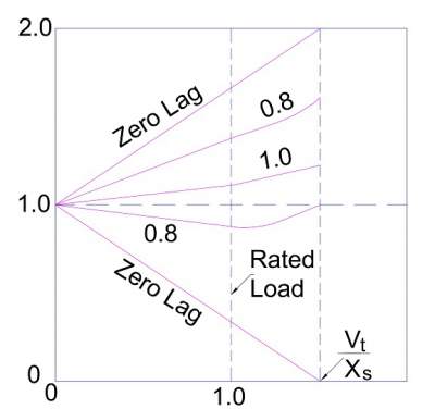 For zero power factor lag, the relationship between terminal voltage Vt and excitation voltage Ef is written as