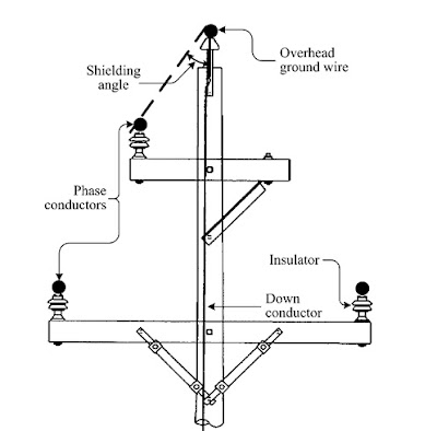 Shielding angles of about 30 degrees is used for majority of transmission lines with tower heights in the range of 25 m. Taller lines require smaller shielding angles than 30 degrees or else there will be Shielding Failures; that is, the lightning will bypass the overhead ground wire and strike the phase wire.