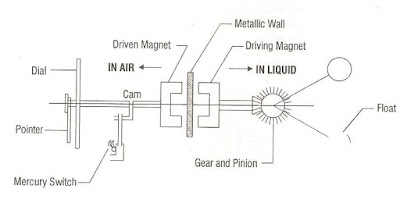 The float of Magnetic Oil Gauge, changes its position as the level of oil in conservator changes. Because of the change in position of the float, the gear and pinion also moves which in turn produces a movement in the connected Driving Magnet. Due to this change in position of Driving Magnet, the magnetic field distribution changes which forces the driven magnet to change its position and hence a movement in the pointer of MOG results. Note that this driving magnet of MOG instrument remains inside the conservator and driven magnet remain outside the tank and directly connected to the pointer of the Magnetic Oil Gauge or MOG