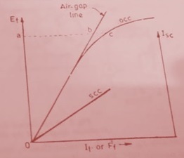 Next assume that if there were no saturation (assuming no iron part is present rather only air gap is present), the relationship between the field current and no load voltage would have been a straight line and that is why the straight line ob in the figure is called Air Gap Line.