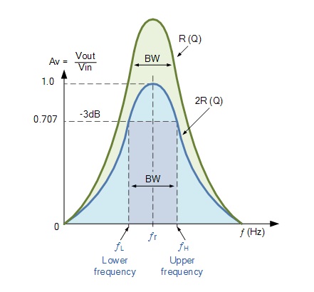 BW = ƒr /Q or BW = ƒupper – ƒlower