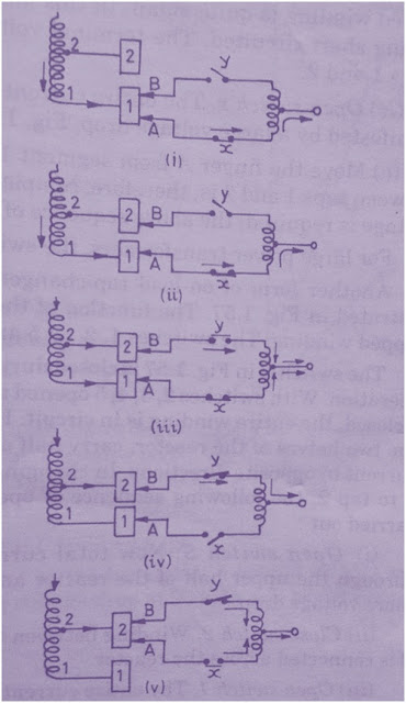 Now close Switch y. Now the Transformer winding between tap 1 and 2 get connected through the Reactor C. As the impedance offered by the Reactor is high for current flowing only in one direction, the circulating current through the Reactor, finger A and finger B will be very less. In this manner the Reactor prevents the tapped winding from getting short circuited.