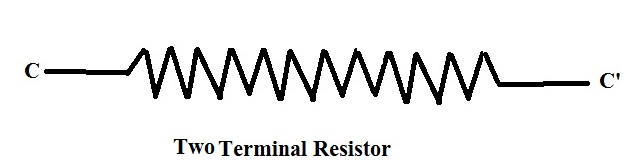 In Four Terminal Resistor, Voltage = Between the potential terminals P and P’ which are located in the middle portion of the Resistor.