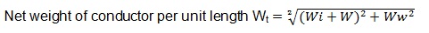As shown in figure above, net weight acting vertically downward is sum of weight of ice and weight of conductor.