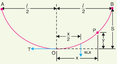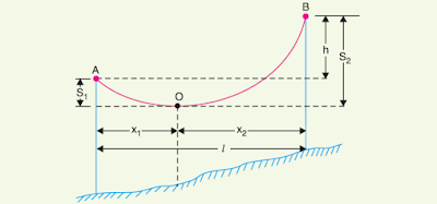 In hilly area, the supports for overhead transmission line conductor do not remain at the same level. Figure below shows a conductor supported between two points A and B which are at different level. The lowest point on the conductor is O.