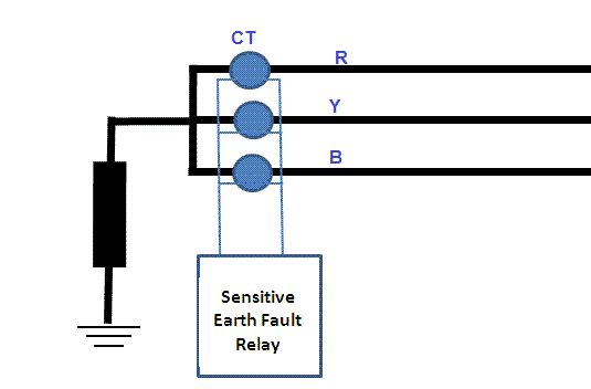 Sensitive Earth fault Protection scheme is used for the detection of earth fault. Protection against phase to ground faults can be a difficult problem since ground fault currents vary within a large range, becoming almost negligible in some situations. The ground fault current magnitude depends on the power system grounding which can vary from solidly grounded to ungrounded neutral. The sensitive earth fault protection is usually used in alternators and transformers with high resistance grounding. High resistance grounding restricts the earth fault current to a very less value and permits the operation of equipment.