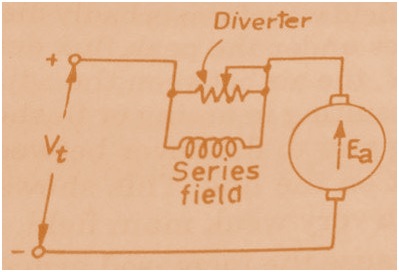 - By putting a resistor, called diverter, in parallel with the series field winding