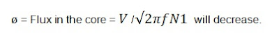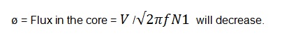 Assuming Number of turns constant, Flux is directly proportional to V/f. Here V is supply voltage and f is frequency of supply.