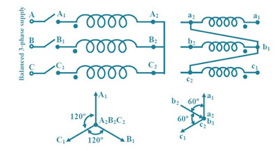 Here first Capital latter Y indicates that the primary is connected in star and the second lower case latter d indicates delta connection of the secondary side. The third numerical figure says the angle of phase shift based on clock convention.