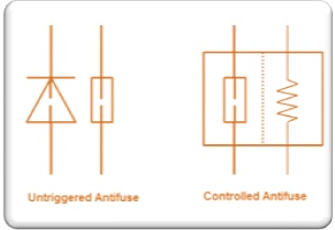 It is an electrically programmable two-terminal device with small area and low parasitic resistance and capacitance. Figure below shows the symbolic representation of Untriggered and Controlled Antifuse.