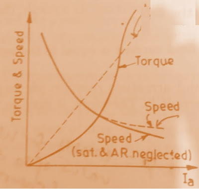 It is clear from the above characteristics of DC Series Motor that, higher the armature or load current, higher is the torque till the magnetic flux causes saturation. Once saturation occurs, the flux will no longer increase in proportion to the increment in current and thus limits the increase in torque.