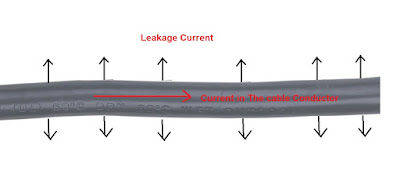 We can understand this by general thinking as, suppose there is a cable of length 100 m and it is having a insulation resistance of 500 Mohm. Now for this length of cable the leakage current will flow throughout the cable as shown in figure below. Here we are talking about leakage current because we are concerned with insulation resistance.