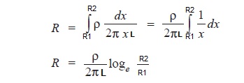 Insulation Resistance (IR) of the assumed layer = ρdx/ 2πxL (From Resistance = ρL/A)