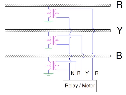 Let us now come to the point, why PT/VT Secondary Terminals should not be shorted? Unlike Current Transformer (CT), PTs are connected in line to ground as shown in figure below. Figure below depicts the connection of three PTs connected in three phases. Note that a neutral point is made by shorting a terminal of three PTs and then grounding the neutral point.