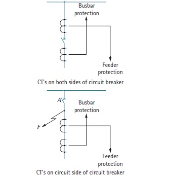 For practical physical and economic reasons, this ideal zoning in protection is not always possible to achieve because accommodation for current transformers being in some cases available only on one side of the circuit breakers, as shown in figure below.